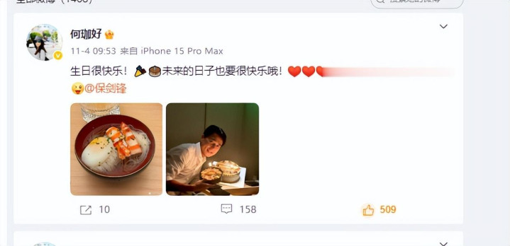 今年4月份,何珈好在社交平台甜蜜发文,一家三口跟蛋糕合照十分甜蜜。