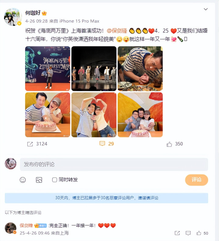 结婚多年,不管是生日还是周年他们几乎都会发文庆祝。